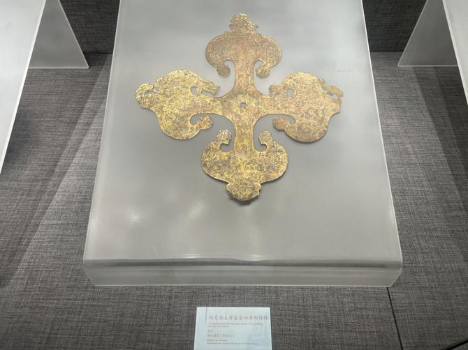 ▲四灵西王母鎏金柿蒂形饰牌。记者苏畅摄
