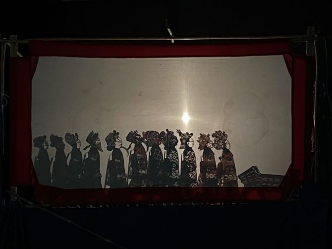 随着大厅的灯光变暗,舞台上的白色幕布开始出现几张皮影,它们有的身起骏马,有的手持长枪,有的拱手作揖,随着二胡、唢呐、锣、钹等乐器奏响,各种皮影或是打斗翻转,或是嬉笑怒骂,惟妙惟肖,栩栩如生。
