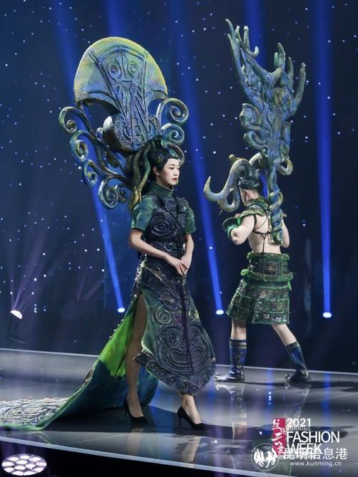 国家一级服装设计师赵纯福带来的《古滇青铜》,将尘封多年的古滇青铜历史文化,结合现代时尚,展现出新的风采。他的设计在民族传统文化的基础上,注入新思想、新理念,以艺术化的审美,融入世界时尚元素,用当代的社会语言诠释民族文化,展现昆明风尚。作为一个地道的昆明人,他希望能为昆明说话,为昆明做事,弘扬民族文化,凸显昆明元素。