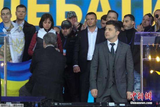 2019年4月,泽连斯基在结束辩论讲话后,向在乌克兰武装冲突中死去亲人的家庭下跪,他还邀请波罗申科加入。
