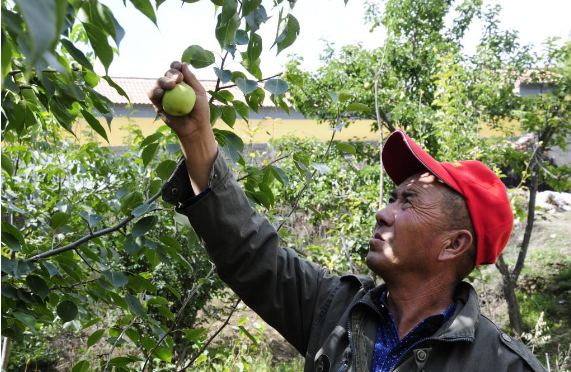 马洪录在自家果园摘梨。 新华社记者王浡 摄