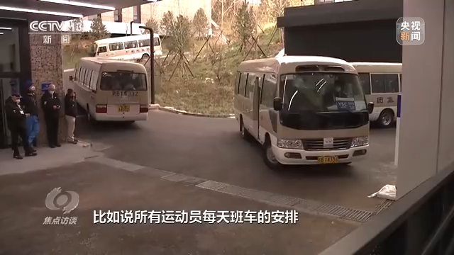 运动员在停车场测温、安检和验证后,就会换乘车辆,沿着规定路线到达他们训练和比赛场地的出发区和结束区。