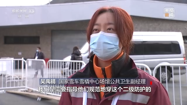 国家雪车雪橇中心场馆公共卫生副经理 吴禹晴:我们需要指导他们规范地穿二级防护,如果穿得不规范,可能包裹不严,起不到保护的作用。