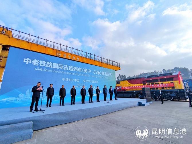 安宁是区域性国际中心城市西线经济走廊,也是面向南亚地区对外开放的陆路门户枢纽,其铁路货运需求量约占昆明铁路货量的三分之一。与陆路货运相比,铁路货运具有成本低、用时短的优势。今天的首发仪式,寄托着安宁人民收获友谊的美好期待。“安宁制造”将通过中老货运班列连接老挝、泰国,辐射东南亚各国乃至全球。安宁——万象中老铁路国际货运列车开行后,会大大降低原材料采购价格,增强产业竞争力,搭上中老铁路上的高速列车,安宁的发展将更加行稳致远,“区域性国际中心城市西线经济走廊”“滇中最美绿城”“中国西部县域高质量发展标兵”的建设步伐将迈得更加坚实有力。