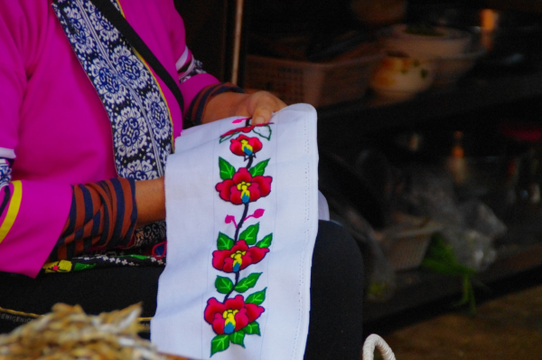 文山壮族苗族自治州彝族妇女在刺绣。(新华社记者 孟佳 2020年10月22日摄)