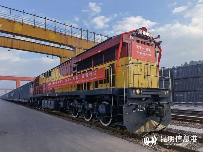 昆明信息港讯 记者上官艳君 12月17日,满载35个集装箱的中老铁路国际货运列车(安宁—万象)从安宁市桃花村火车站缓缓驶出。列车的开行,将为昆明与东南亚国家经济贸易往来打通一条更加安全、便捷的运输通道。