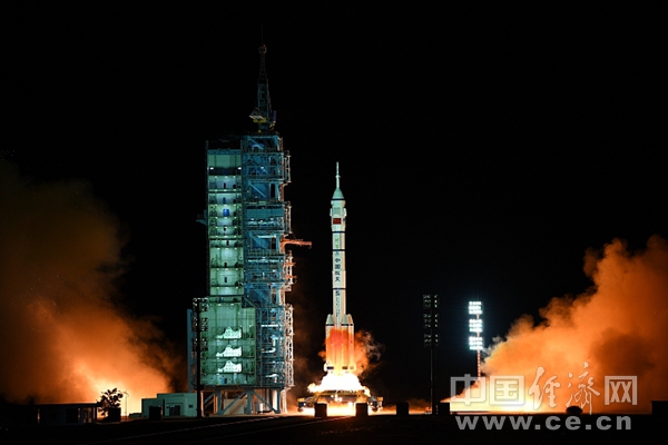 搭载神舟十三号载人飞船的运载火箭点火起飞。(图片来源:视觉中国)