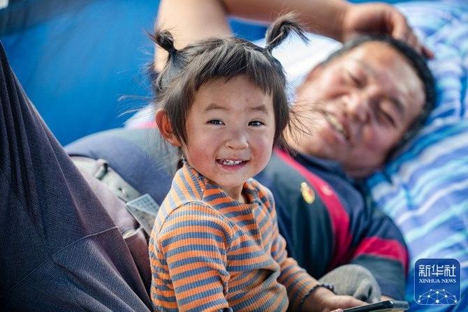 △5月22日,在云南省漾濞县秀岭村,一名小女孩在安置帐篷里休息。5月21日21时21分和48分左右,云南大理州漾濞县分别发生5.6级和6.4级地震。