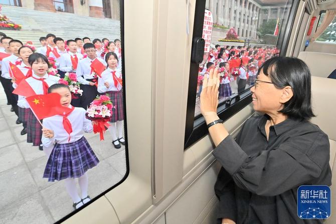 △6月29日,庆祝中国共产党成立100周年“七一勋章”颁授仪式在北京人民大会堂金色大厅隆重举行。这是“七一勋章”获得者张桂梅向青少年致意。
