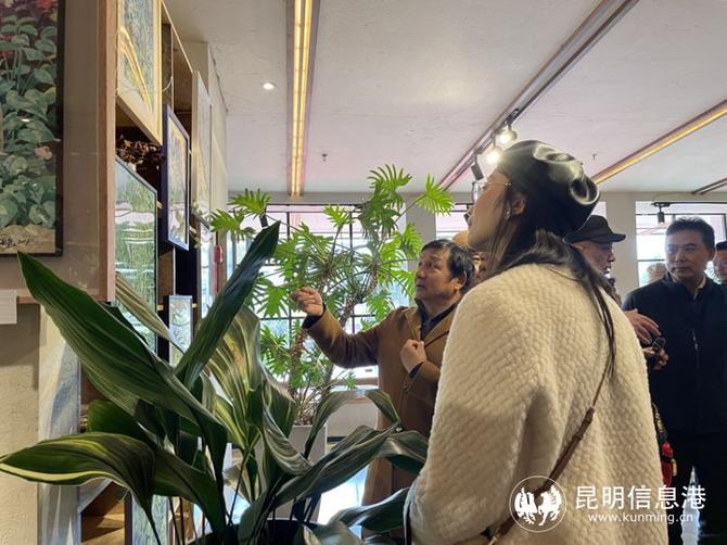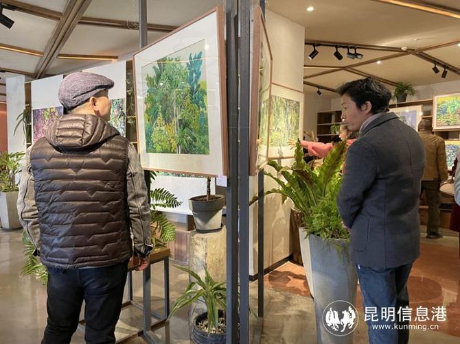 昆明信息港讯 记者甘凌菲 12月18日,“万叶千声 叠采自然”——王玉辉重彩画展在昆明王府井奥莱•滇池小镇“大象好在Χ莳季植物客厅”开幕,48幅作品联袂呈现,和灵动的室内植物叠加掩映,将观展者带入到了西双版纳雨林和民族村落等物种多样的自然场景中。