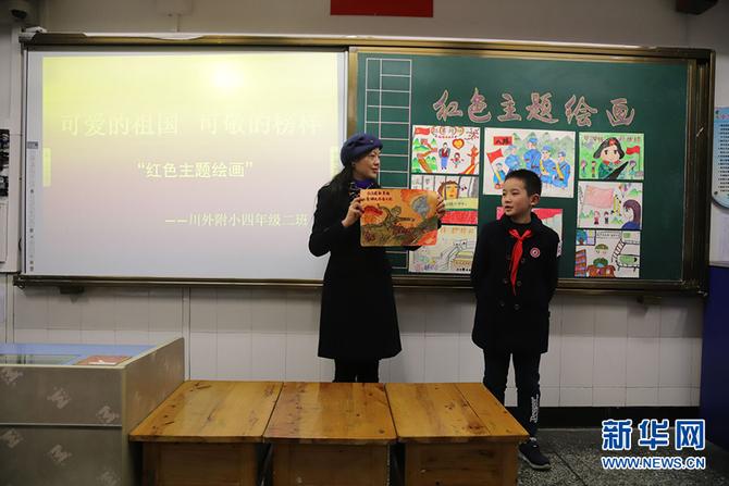 与此同时,音乐课教室内,音乐老师指导着小朋友们用葫芦丝合奏练习红色歌曲《卢沟谣》;另一间教室,一堂关于红色主题绘画的美术课正在进行……这些丰富多彩的红色课堂,已经成为川外附小学生们最熟悉的教学内容。