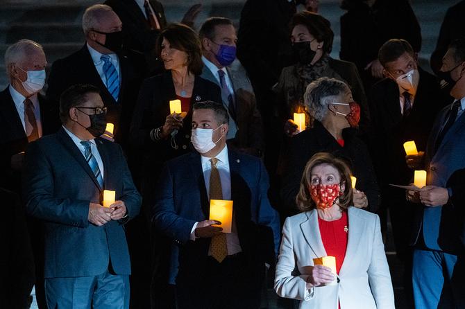 美国新冠死亡人数超80万,参众两院议员点燃烛光缅怀死者
