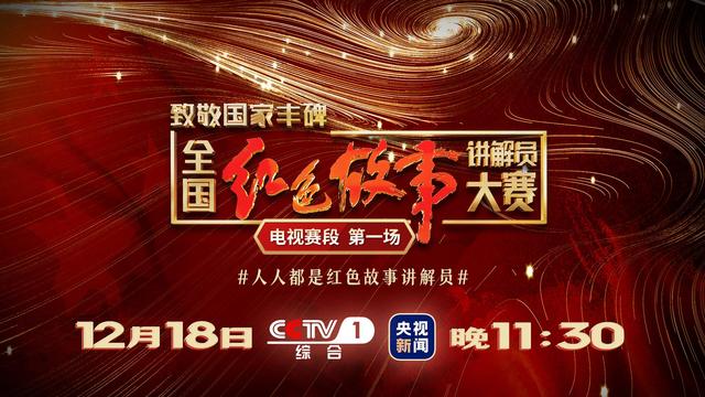 《致敬国家丰碑——全国红色故事讲解员大赛》电视赛段于12月18日晚间11:30,央视新闻新媒体全平台并机CCTV-1综合频道开播!跟随来自全国各地十二位优秀讲解员的脚步,一起走进红色故事,致敬国家丰碑。