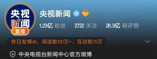 关注@央视新闻 微博、抖音、快手、B站等新媒体平台官方账号