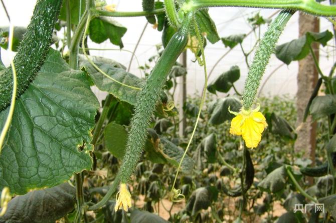 蔬菜大棚里的黄瓜(央广网记者张海东摄)