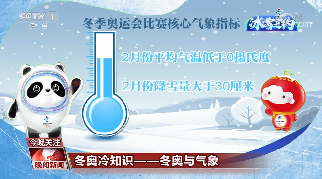 冬季奥运会比赛核心气象指标有两条,一是2月份平均气温低于0摄氏度,二是2月份降雪量大于30厘米。