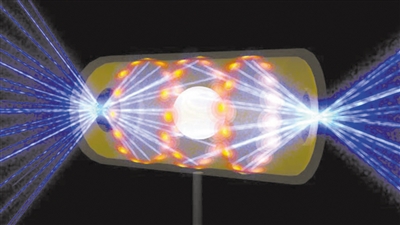 为了产生美国国家点火装置的聚变反应,192束激光束汇聚在一个微小的燃料芯块周围。