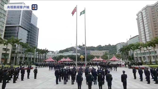 澳门特区政府、中央驻澳机构与澳门各界人士约500人一同观礼。澳门各界人士表达了对澳门未来发展的美好祝愿。内地奥运健儿访澳代表团也参加了升旗仪式。(央视新闻 记者赵晶 曾文甫 戴峰 肖中仁 张煜)