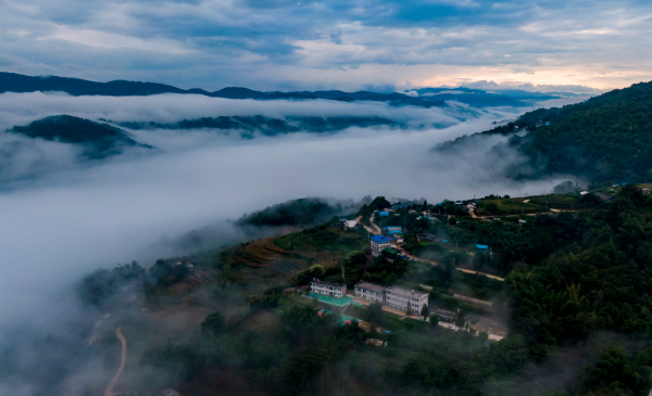 图为晨雾间的澜沧拉祜族自治县木戛乡哈卜吗村一隅。
