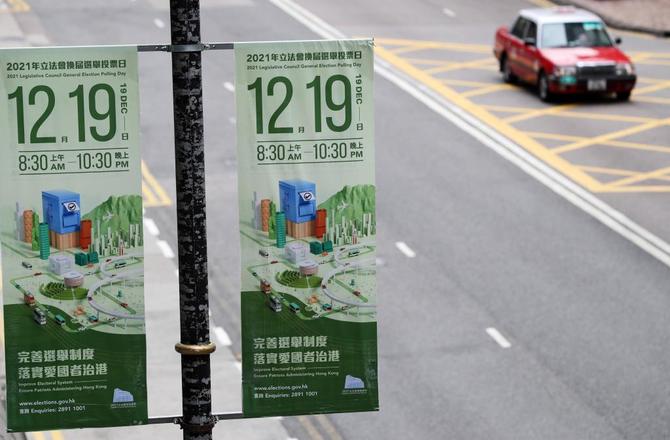 12月19日拍摄的香港街头的海报。(新华社记者李钢摄)