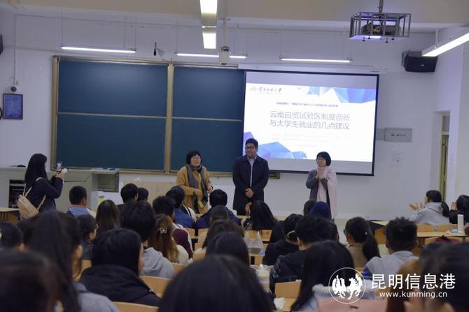 12月9日,中国云南自由贸易试验区(昆明经开区)制度创新部副部长董佳博士(入选2020年“春城计划”青年人才专项)到云南民族大学,为文学与传媒学院和经济学院的在校生做了题为《云南自贸试验区制度创新与大学生就业的几点建议》的报告。