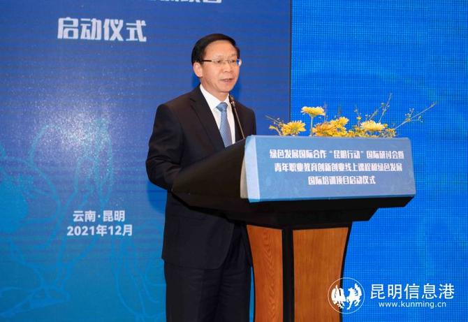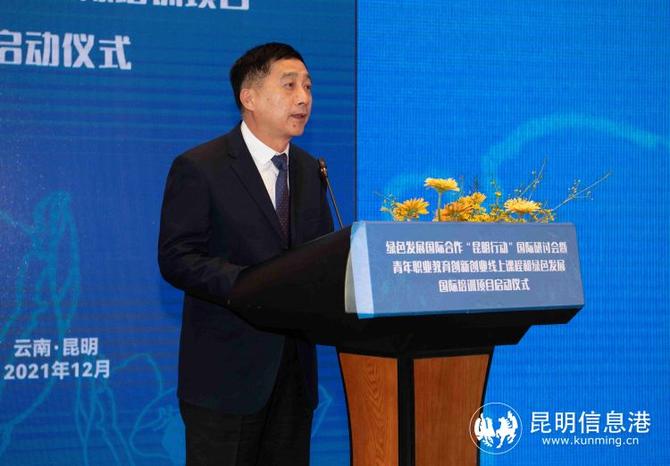 昆明信息港讯 记者苟廷廷 通讯员冯靖凯 12月20日,由昆明市人民政府主办,昆明市人民政府外事办公室与中国(云南)自贸区昆明片区(昆明经开区)共同承办的“绿色发展国际合作‘昆明行动’国际研讨会暨青年职业教育创新创业线上课程和绿色发展国际培训项目启动仪式”在自贸区昆明片区举行。