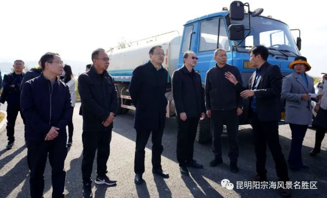 12月20日,台盟云南省委专职副主委李志强,中共昆明市委统战部副部长、市工商联党组书记冉德涛及台盟云南省委、市委统战部、市生态环境局、昆明市河(湖)长办一行,到阳宗海开展实地调研,区领导孙继华陪同调研。