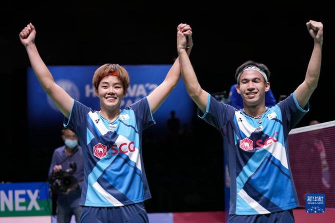 当日,在西班牙韦尔瓦举行的2021年世界羽毛球锦标赛混合双打决赛中,泰国组合保乌拉努科/德拉达那猜以2比0战胜日本组合渡边勇大/东野有纱,获得冠军。