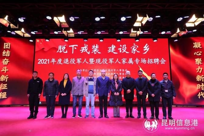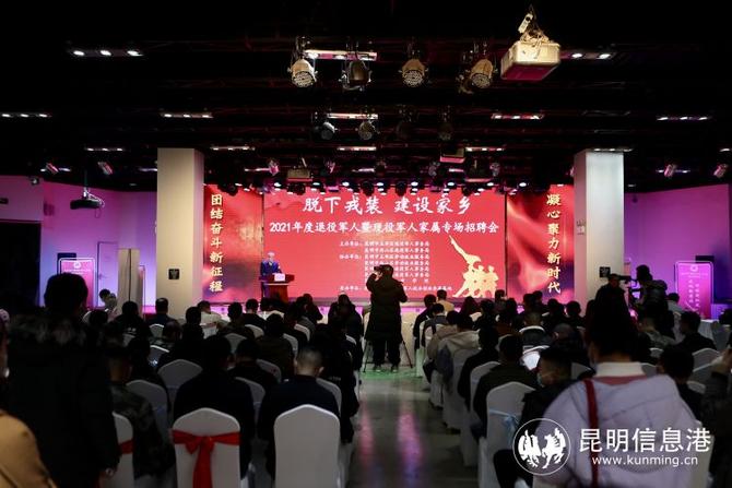 昆明信息港讯 记者上官艳君 12月21日,2021年度“脱下戎装,建设家乡”退役军人暨现役军人家属专场招聘会在五华区金鼎科技园18号平台举办。