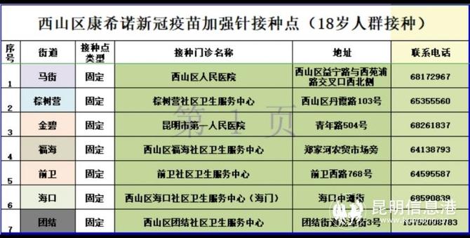 记者了解到,接种过2剂灭活疫苗、1剂腺病毒载体疫苗满6个月的18岁及以上人群,可以前往含西山区人民医院在内的7个接种单位接种康希诺新冠疫苗加强针,本次将优先为国家要求的重点人群实施接种。