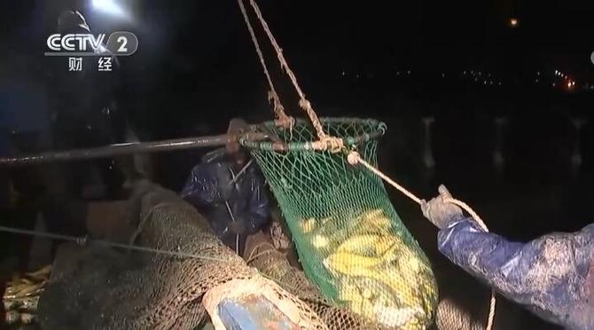 晚上六点多,工人们打开船舱,将连着起锚机的网兜伸进养殖网箱内。当网兜中装满大黄鱼后,起锚机将网兜吊离水面,拉高到船舱正上方时,船员则用力一拉网兜下的一根绳,一条条仿佛镀金的大黄鱼从开口的网兜中落入舱内。不到1小时,一个深水网箱的大黄鱼全部捕捞进舱。当天晚上共起捕8000余斤大黄鱼,一半已被上海、舟山和嵊泗当地的客户预定,按规格不同,价格在每斤30—50元。