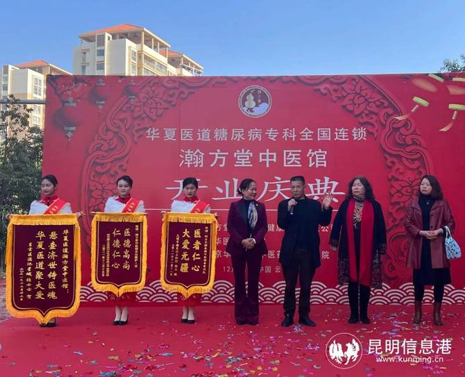 昆明信息港讯 记者罗文忆 12月22日上午10点18分,昆明瀚方堂中医门诊开业庆典及剪彩仪式在俊福花城36栋前广场举行。北京华夏医道中医药科学研究院院长张述胜、北京华夏医道中医药科学研究院副院长杨军权等出席了开业仪式并表示祝贺。