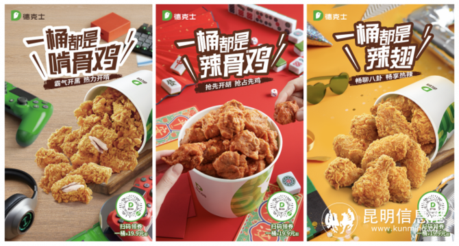 昆明信息港讯 记者周智宇 近日,德克士巨型炸鸡桶在8座城市(上海、成都、昆明、贵州、郑州、兰州、福州、西安)正式亮相,此外,德克士还推出6款炸鸡桶,组成“一桶都是炸鸡”系列,在全国餐厅同步上架。此次活动在2021年尾声之际,以“一桶都是快乐,啃就对了”为主题,将年轻人未完成的flag比喻成“难啃的骨头”,与德克士的炸鸡产品进行链接,携手网易开启新一轮的走心营销,旨在鼓励消费者面对生活的硬骨头时,像啃炸鸡一样,在过程中收获快乐。