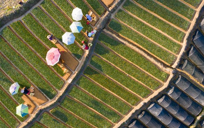 12月11日,在福安市甘棠镇厝坪村茶苗培育基地,茶农在扦插茶苗(无人机照片)。新华社发(王志凌 摄)