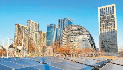 图为北京冬奥村光伏发电现场。