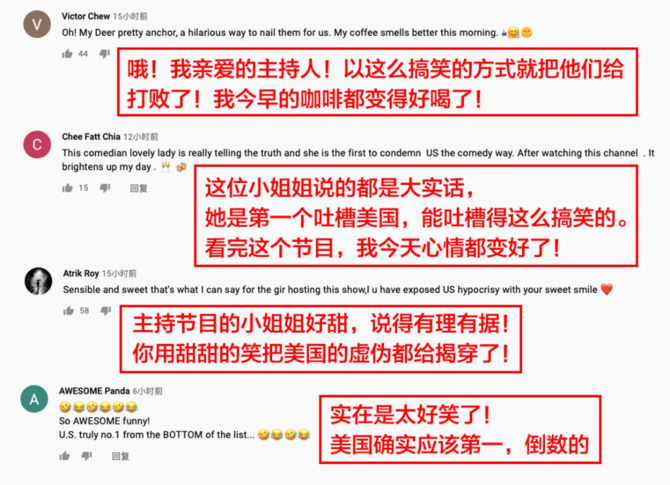 海内外网友在评论区一边点赞,一边自发接力:美国是“第一伪君子”、“第一厚脸皮”……