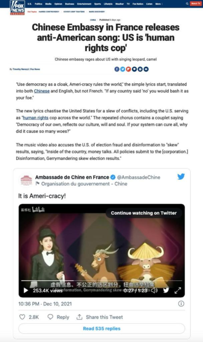 节目也引起了西方知名媒体的转引和报道。比如英国BBC、美国福克斯和《纽约邮报》等几十家外媒撰文,对《迪迩秀》节目做详细介绍和点评。