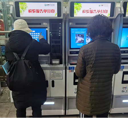 对此,该院启动了应急机制,对检测点的医务人员进行弹性支援,并增加了两台自助服务一体机,以方便患者进行缴费以及打印检测报告。