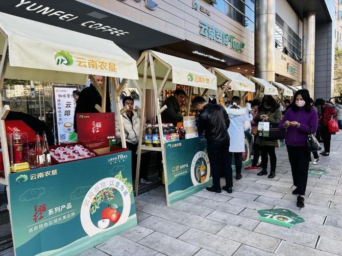 现场,云南农垦自有品牌“云粮·洱海留香”软香米、“龙珠”白砂糖、“云垦红”红糖、“云啡”咖啡、“八角亭”茶叶、“云花香”鲜花、“沁果昭红”苹果、“天使”薯片、“云菜花”食用油、“百华谷”蜂蜜、“云胶”乳胶制品等绿色农产品集体亮相,为春城市民奉上一场绿色美食盛宴。