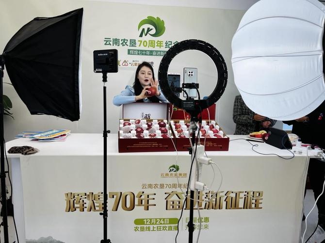 “云南农垦70周年庆·好物市集”绿色食品推介暨产品直播带货活动现场