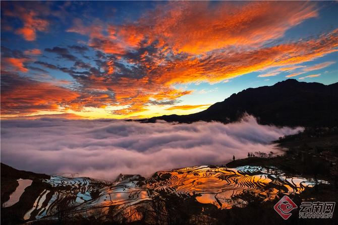 在冬日的最佳观赏期里去看一次元阳万亩梯田吧,看看哈尼先祖们在1300多年前用勤劳的双手将莽莽大山雕刻成如今的浩瀚梯田,感受史诗般的农耕文明传奇,看看世界文化遗产红河哈尼梯田核心区森林、村寨、梯田、水系“四素同构”的生态系统勾勒出的人与自然和谐共生的美丽画卷。