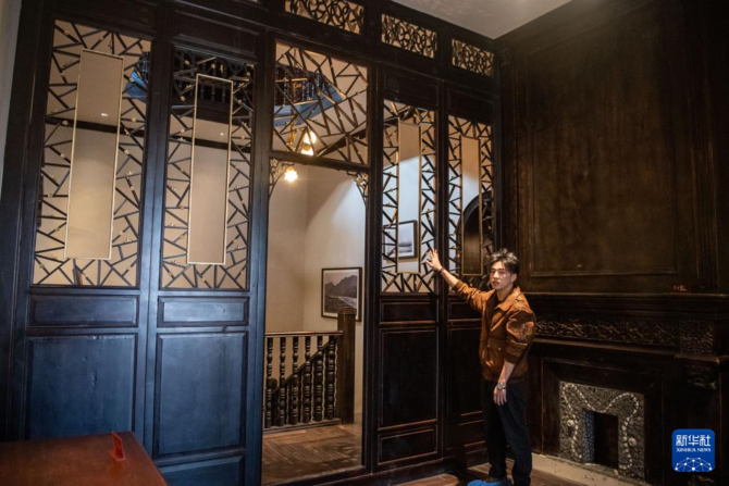 12月22日,工作人员在介绍立德乐洋行旧址内部细节的修缮情况。