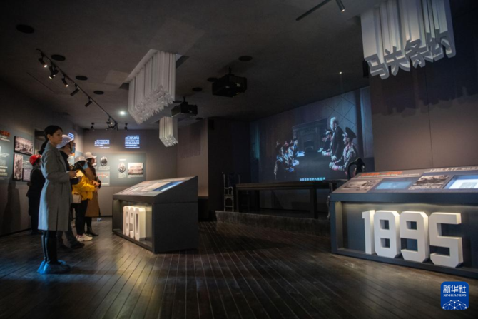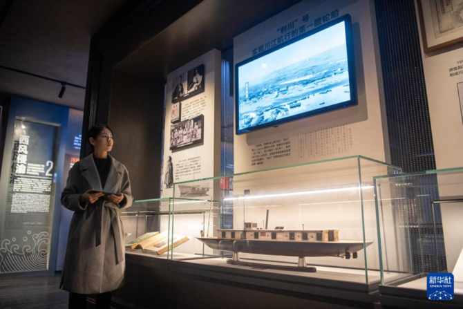 12月22日,在由立德乐洋行仓库旧址改建的重庆开埠历史陈列馆内,讲解员在熟悉播放设备。
