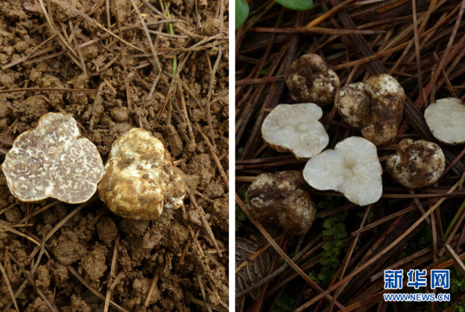 除植物新种外,作为“野生菌王国”的云南,今年以来也发现了不少真菌新种,松露块菌、曲靖块菌就是其中两个。块菌隶属盘菌目、块菌科,常被我国西南各地百姓叫做 “猪拱菌”,商业上则多称为松露。“吃货”可能忍不住要问,“本次发现的两个新种可以吃吗?”据科研工作者介绍,松露块菌和曲靖块菌不仅能食用,还潜藏着不小的经济价值。图为拼版图片,左图为松露块菌、右图为曲靖块菌(资料图片)。新华网发(万山平 摄)