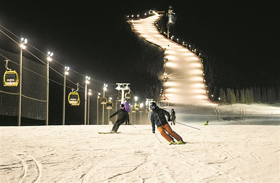 雪友在新疆丝绸之路国际度假区体验滑夜雪