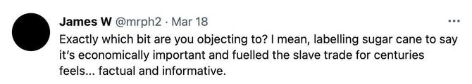 更有网友指出邱园的做法为真实的历史增加更多细节,并没有什么不对:“到底在反对什么?我认为,给甘蔗贴上标签来表示它在经济上很重要并且推动了几个世纪的奴隶贸易,这感觉……是事实和且信息丰富。” ↓