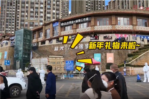 近期,昆明市呈贡区蓝光天娇城小区突发新冠肺炎疫情,小区10519户居民居家配合封闭防控。12月31日下午,昆明市呈贡区委、区政府在做好日常保供的基础上,为居民们送上“新年大礼包”。