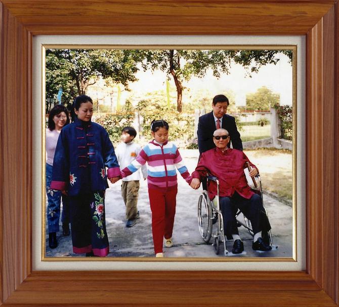 习近平一家三口和习仲勋在一起、习近平在福州时带女儿玩的两张照片,自习近平第一次发表新年贺词以来,就一直在书架上。