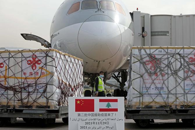2021年11月29日,中国援助黎巴嫩第二批新冠疫苗运抵贝鲁特拉菲克·哈里里国际机场。 新华社发(比拉尔·贾维希 摄)