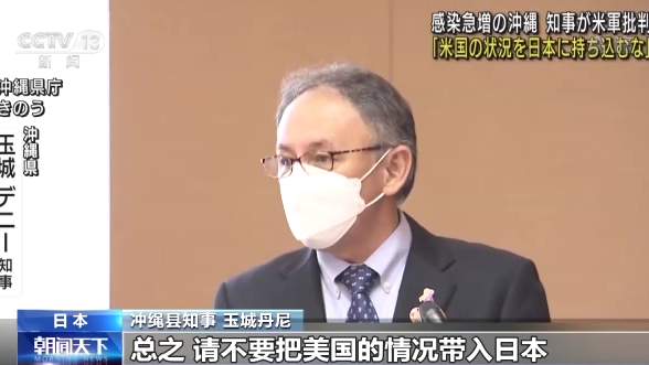 冲绳县知事 玉城丹尼:(驻日)美军阳性病例数的再度激增,说明美军在预防和管理疫情传播方面存在不足,我们对此感到愤怒,总之,请不要把美国的情况带入日本。
